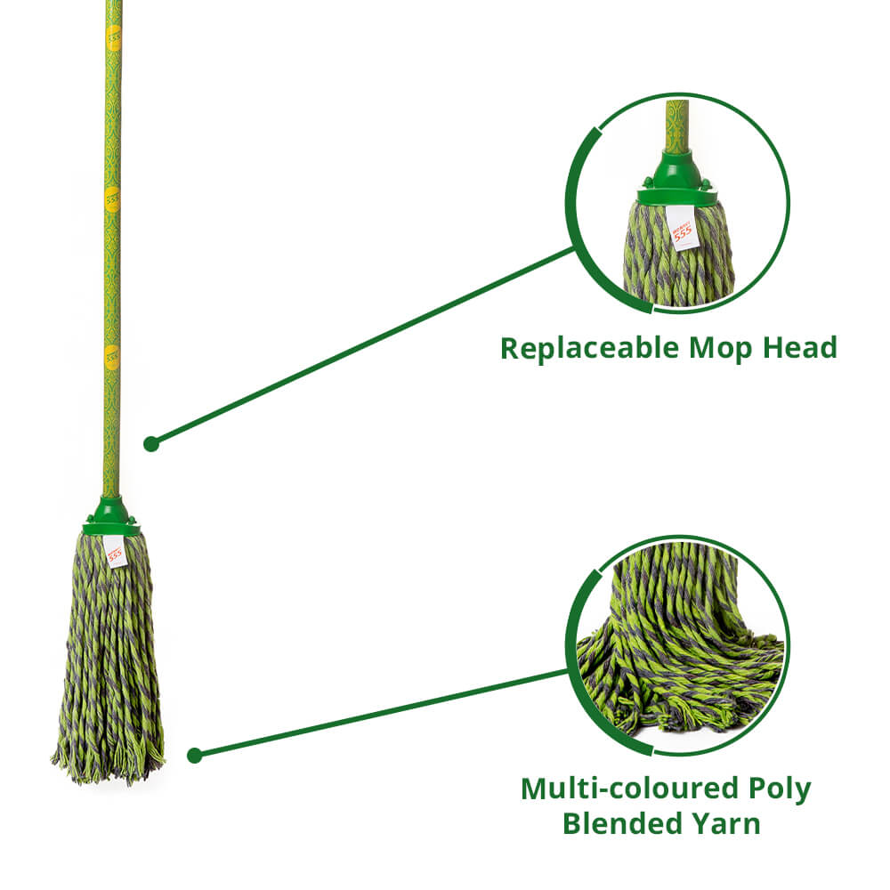 The Monkey 555 Mexican Cup Mop uses a CPVC (Chlorinated Polyvinyl Chloride) plastic clip and holder for better flexibility and higher temperature resistance when compared with the regular PVC. This ensures more durability when compared with the local mops. The Mexican cup mop is a great way to clean your floor without making a mess. The monkey 555 mop head is made of absorbent materials that will quickly soak up spills and dirt, and the long handle ensures that you can reach all areas of your floor without having to stoop or bend. Plus, the bright colours and fun design are sure to add a touch of personality to your home. Whether you’re cleaning up after a party or simply trying to keep your floors looking their best, the Mexican cup mop is an excellent choice.