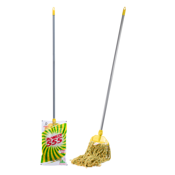 The Monkey 555 Power Mop features a 9-inch clip lock with 350 grams of yarn for excellent water retention. Made from 2s count 12 PLY bleached white yarn, it ensures superior cleaning performance and durability. Crafted with long-lasting, recyclable fiber, this mop is designed for efficient and eco-friendly cleaning.